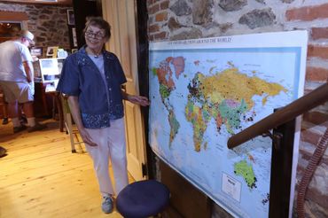 The display itself is located near the old city clock at the public restroom, which was designed to accommodate it. Keith contributed by installing a bronzed wood plaque to hold the map, and Josette has diligently maintained it for 25 years. She has even updated the map and photos periodically, with the latest map being a gift from Keith in recognition of her dedication.